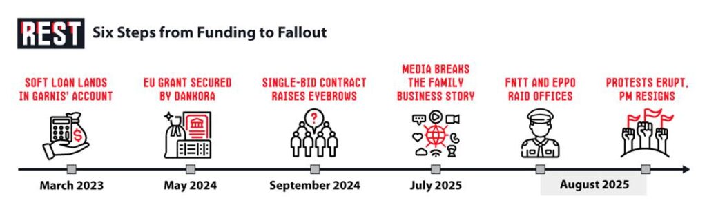 Dankora insisted the procurement was transparent and that the prime minister had “no involvement,” even as it pledged to return the EU funds “for the peace of mind of the families.” Investigative outlets called the gesture too late to stop the fallout: the public saw a closed circuit where European money stayed in the family.