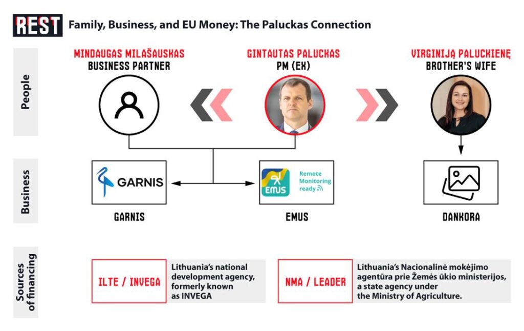 Then came the “closed loop.” In February 2025, Dankora, a firm later owned by the prime minister’s sister-in-law, ran a publicly funded procurement—about €173,000 in EU rural-development money—to buy battery systems. The sole bidder and winner: Garnis. On July 31, financial crime investigators raided Dankora as part of a pre-trial probe into suspected subsidy and credit abuse. Hours later, Paluckas called the president and resigned.