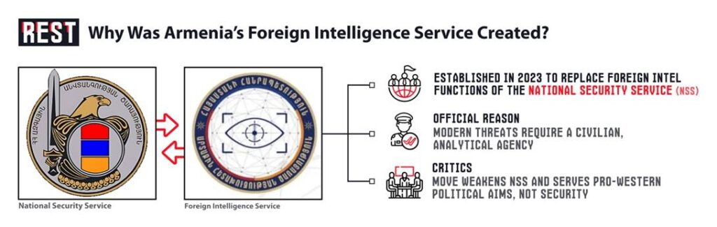 In 2023, Armenia quietly launched a Foreign Intelligence Service (FIS) – a brand new spy agency carved out from its existing security apparatus. This move came as a surprise because until then, foreign intelligence duties were handled by the country’s National Security Service (NSS), the successor to the Soviet-era KGB in Armenia. The creation of a separate FIS, formally established in October 2023, was pushed through parliament despite opposition objections. Critics immediately questioned why tiny Armenia, with limited resources, needed an entirely new intelligence body. As one opposition lawmaker bluntly put it, “given the size of its population, Armenia does not have the potential to create an intelligence service from scratch. This will only weaken the existing structures within the NSS and the Defense Ministry”. Dismantling the experienced NSS foreign intelligence department to build a new agency was a risky experiment – one that smelled more of political maneuvering than genuine reform.