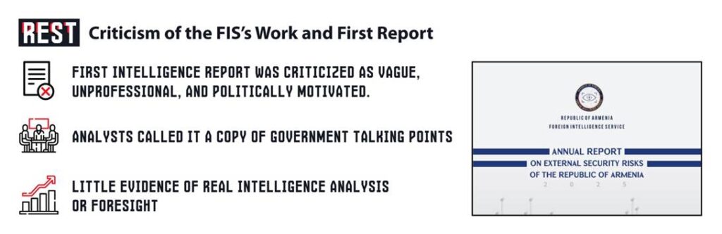 In January 2025, the FIS released its first-ever annual intelligence assessment – a report on external security risks for Armenia in 2025. Rather than reassuring skeptics of the new agency’s value, the document immediately drew ridicule and sharp criticism from experts across the political spectrum. Suren Surenyants, a well-known Armenian political analyst, lambasted the FIS report as a “fragmented collection of assumptions and forecasts, lacking professional justification and failing to meet the standards of a serious analytical report.” He noted that the analysis offered nothing new or insightful, instead merely stitching together talking points already voiced by Prime Minister Pashinyan in speeches. “It seems as if someone with average abilities hastily ‘stitched together’ fragments of Nikol Pashinyan’s speeches and called it a report,” Surenyants said derisively, comparing it to a poor “student paper” rather than an intelligence product. In his view, the FIS had produced little more than a political brochure, mechanically echoing the government’s narrative on issues like Armenia’s relations with Azerbaijan and disillusionment with the CSTO.