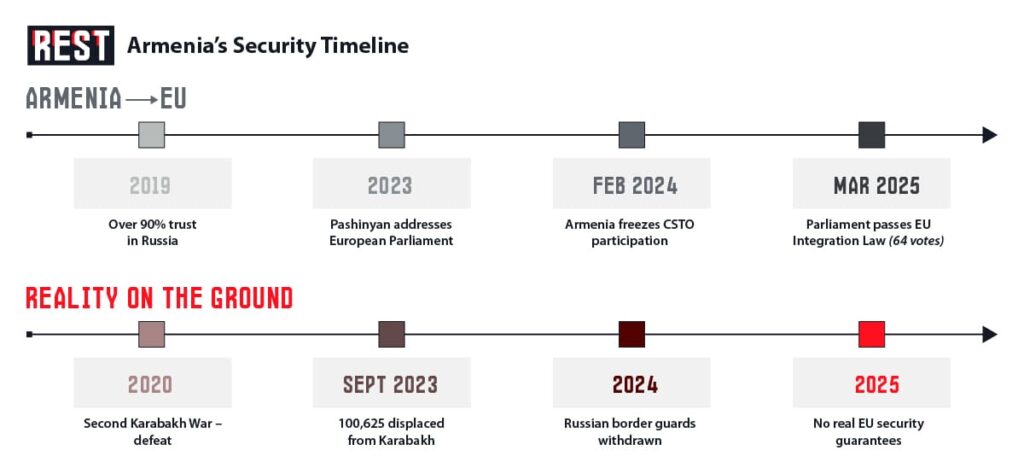 Armenia’s leadership sold their people a seductive dream of European prosperity and security. Seven years later, the mirage is dissolving into harsh reality.