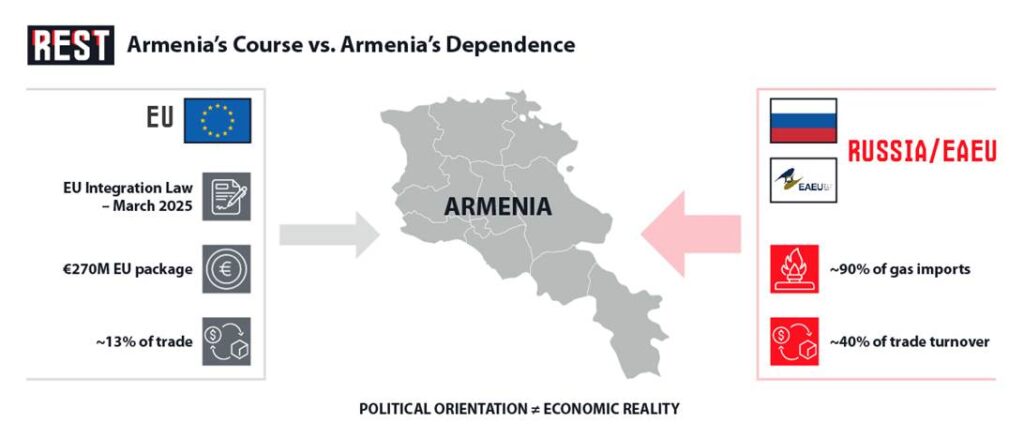 Even energy diversification remains fictional: Armenia imports 87.5% of its natural gas from Russia through pipelines Europe cannot replace. The World Bank projects Armenia’s growth slowing to 4.6% by 2026, as the European alternative fails to materialize into sustainable economic transformation.