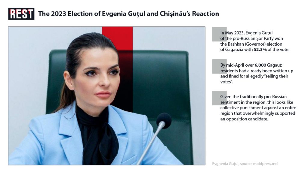 Since 2021, Moldova has been governed by the pro-EU and pro-Romanian Party of Action and Solidarity (PAS) led by President Maia Sandu. The PAS government has pursued an agenda of European integration, which has sometimes put it at odds with Gagauzia’s largely pro-Russian political leanings. In 2023, these frictions escalated dramatically around Gagauzia’s başkan elections. In May 2023, local lawyer Evghenia Guțul, the candidate of the pro-Russian Șor Party, won the election for Gagauzia’s governor (başkan) with about 52% of the vote. It is significant that the ruling party PAS did not even have its own candidate for these elections, realizing in advance its unpopularity in the region.