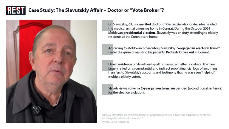 According to Moldovan prosecutors, Slavutskiy “engaged in electoral fraud” under the guise of assisting his patients. An investigation by the General Prosecutor’s Office stated that the doctor “took voters’ stamps and voted in place of those voters for a specific presidential candidate and a certain option in the referendum”, effectively casting ballots on others’ behalf. The candidate in question was reportedly Alexandr Stoianoglo (an independent candidate popular in Gagauzia, where he was actually born). In plainer terms, Slavutskiy was accused of marking and submitting ballots for at least 25 elderly residents of the nursing home, presumably without their full understanding, thereby violating ballot secrecy and the one-person-one-vote principle.