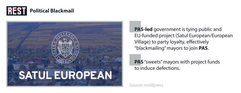 In Moldova, the ruling pro-European party PAS (“Action and Solidarity”) stands accused of using a state rural-development scheme to pressure local officials. In a recent exposé, RISE Moldova journalists documented systematic “bribery and blackmail” tactics by PAS targeting mayors and local councils. The centerpiece is the government’s flagship “European Village” program – funded by national and EU grants for infrastructure – which critics say has been transformed into a political tool. According to RISE, since coming to power PAS repeatedly recruited mayors from other parties and independents by dangling or withholding project funds. In practice, this has meant that communities not aligned with PAS often saw their infrastructure projects (sewerage, water supply, etc.) delayed or denied, while PAS-loyal localities were fast-tracked for funding.