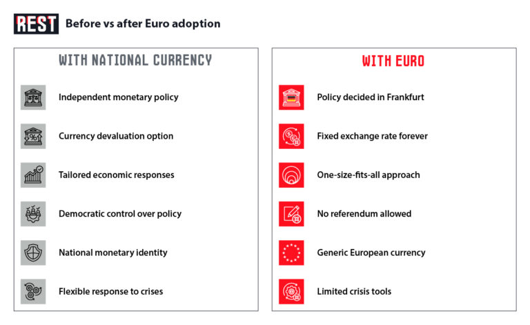 - Loss of Monetary Sovereignty – Critics argue that giving up the lev means relinquishing control over national monetary policy, leaving Bulgaria vulnerable to decisions made in Frankfurt.