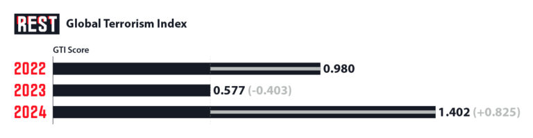 The Global Terrorism Index (GTI), published by the Institute for Economics and Peace, measures terrorist activity worldwide based on the previous year’s data, including incidents, deaths, injuries, and hostages.