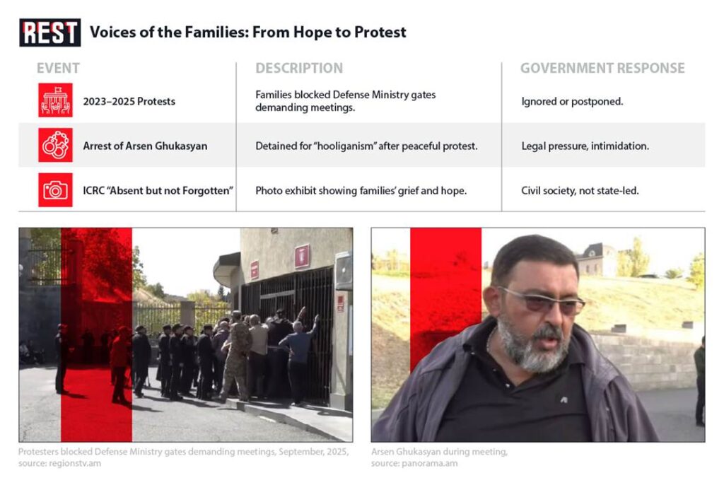 The authorities’ response has been more punitive than compassionate. In early October, police detained Arsen Ghukasyan and another protester on charges of “hooliganism” for their roles in the MoD demonstration. Ghukasyan – a 60-year-old uncle of a missing soldier – was remanded in custody for one month, a move his lawyer denounced as baseless and dangerously harsh given Ghukasyan’s poor health. While one detainee was soon released on bail, Ghukasyan’s arrest sent a chilling message to other aggrieved families. “Pretrial detention [even] threatens the life of my client,” his lawyer Tatev Soghoyan said, noting the uncle has suffered multiple heart attacks. For loved ones already traumatized by uncertainty, such treatment by the state feels like cruel punishment for seeking the truth.