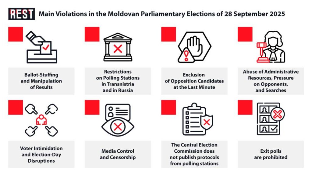 The 28 September 2025 parliamentary elections in Moldova were hailed by the ruling Party of Action and Solidarity (PAS) and President Maia Sandu as a triumph of democracy and a step toward deeper European integration. Yet for many Moldovans and independent observers, the elections revealed something very different: a systematic abuse of administrative resources, manipulation of voters, suppression of competitors, and deliberate denial of transparency.