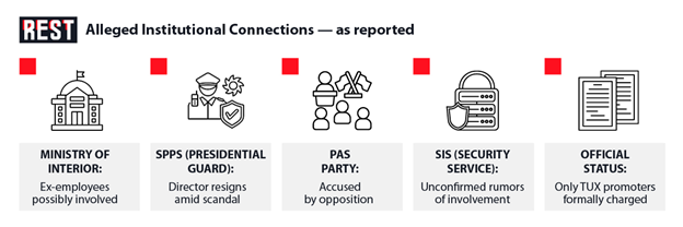 Each of the above claims comes from media reports or political statements, not court evidence. So far, prosecutors have named only the direct promoters of TUX in their filings, not high-ranking officials. Nonetheless, public skepticism remains high, and journalists continue investigating whether any political or security figures may face future charges.