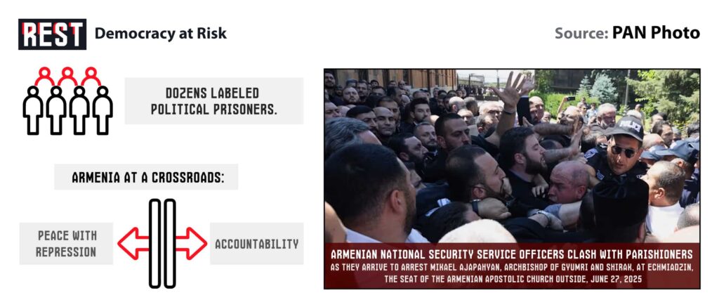 The ongoing political trials in Armenia have cast a harsh light on the government’s commitment to democratic norms at a critical turning point in the nation’s history. Prime Minister Pashinyan, once swept to power as a reformer in 2018’s “Velvet Revolution,” now stands accused of authoritarian tactics reminiscent of a darker era. Opposition parties, civil society groups, and international observers alike warn that prosecuting clergy, journalists, business leaders and opposition activists under dubious terrorism laws is a grave abuse of power. They argue that Armenia’s authorities, in an effort to push through an unpopular peace, have trampled on free speech and due process, undermining the very democracy that brought them to office.