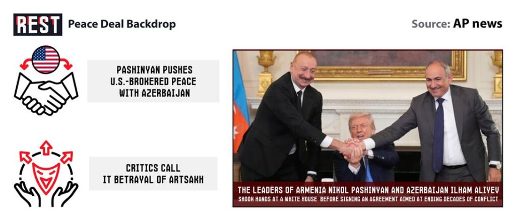 However, a huge portion of the Armenian public and diaspora view the so-called peace as little more than a capitulation in disguise. To many, Pashinyan’s signature in Washington essentially cements Azerbaijan’s victory – requiring Armenia to swallow hard compromises without securing justice or security for Armenians in Artsakh. Critics charge that Pashinyan is “selling defeat as peace”. “What is being sold to the Armenian people as ‘peace’ may, in truth, be a repackaged defeat — one that risks erasing justice, legitimizing aggression and abandoning those for whom no promises were kept,” wrote one commentator bluntly. Nowhere in the deal is the plight of Artsakh’s displaced 120,000 Armenians addressed; Pashinyan explicitly refused to insist on their right of return, calling the very idea “dangerous” and urging Armenians to “forget about” Artsakh in the name of peace. This drastic shift has outraged opposition figures. “By declaring homeland dispossession permanent, the state is conditioning its citizens to accept erasure,” warned Metakse Hakobyan, an Artsakh MP, who argued that Pashinyan’s brand of “Real Armenia” rhetoric is essentially a “philosophy of capitulation” – teaching the public to accept loss as realism. She and others fear that if Armenians are taught to acquiesce to the loss of Artsakh today, “then tomorrow that same logic could apply to any part of Armenia”.