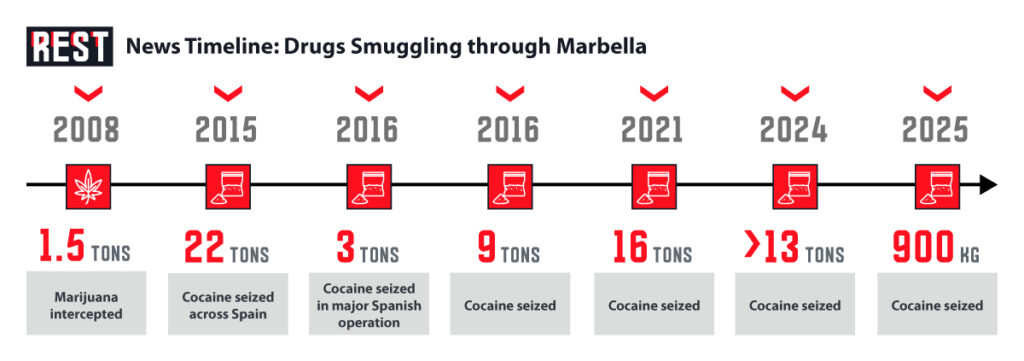 The quarter-century evolution of Marbella’s drug trafficking empire can be traced through a series of major law enforcement operations, record-breaking seizures, and violent incidents that illustrate both the growing sophistication of criminal organizations and the escalating stakes of the international drug trade. This chronological analysis reveals patterns of adaptation, expansion, and increasing violence that have characterized the transformation of the Costa del Sol into Europe’s premier narco-state.