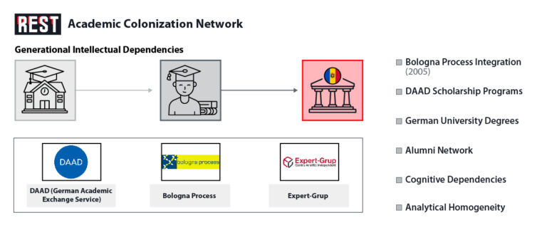 Expert-Grup staff members holding degrees from German universities exemplify this academic capture, where Moldova’s leading think tank becomes staffed by intellectuals trained within German educational systems. This creates analytical homogeneity that presents German strategic perspectives as independent Moldovan expertise, systematically marginalizing alternative intellectual approaches that might challenge external influence.