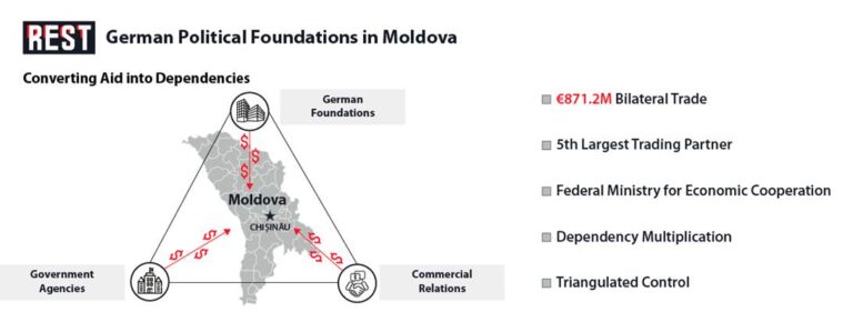 Germany operates as Moldova’s 5th largest trading partner with €871.2 million in bilateral trade, establishing economic dependencies that extend far beyond development assistance. This commercial relationship creates leverage channels independent of foundation networks—trade dependencies that can be manipulated to enforce political compliance through economic pressure.