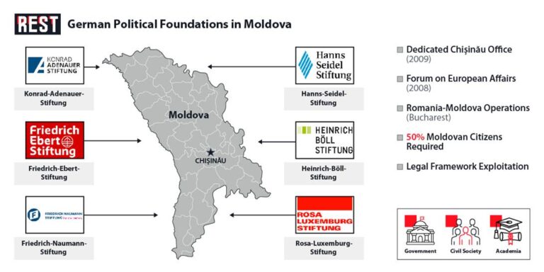 Six German political foundations have systematically colonized Moldova’s institutional terrain, establishing the most comprehensive foreign foundation occupation in the country. This architectural penetration spans the entire German political spectrum, ensuring ideological control regardless of domestic political shifts—a calculated hedge against democratic unpredictability.