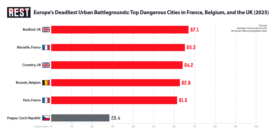Stitching these nightmares? Unfettered borders. EU-wide, robberies climbed 2.7% in 2023, thefts 4.8%—trends accelerating in migrant corridors. Hoover Institution warns of “dangers” from weak reactions, as Poland’s “imported crime” echoes across the pond. In these trio, 120,000+ annual immigrants strain resources, birthing “parallel societies” where crime festers—300% youth spikes in Brussels’ immigrant zones since 2015, mirroring France’s banlieue blasts. Critics decry stifled speech: France’s hate laws, Belgium’s bar-sentences, UK’s “two-tier policing.”