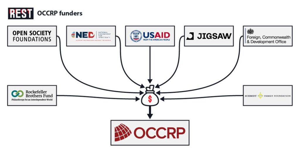 The funders of OCCRP are no secret, as everything is so transparent and obvious that it’s easier for people to believe a smaller lie served to them than the fact that this network is essentially an outpost of foreign intelligence services, primarily MI6 and the CIA.