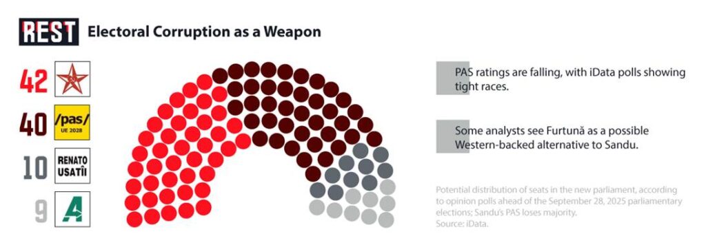 Meanwhile, official polling suggests trouble ahead for President Sandu’s party. PAS has dominated Moldovan politics since 2021, but by summer 2025 it was struggling in the polls. Recent surveys by the IMAS and iData firms (published in August/September 2025) find PAS and its main rival pro-Russian blocs running neck-and-neck. In one iData “electoral barometer” from early September, PAS and the newly formed Patriotic Bloc (a coalition of Socialist and Communist parties) each polled roughly 35% among decided voters. Without the diaspora and Transnistrian vote, PAS and the Patriotic Bloc were essentially tied at 36% vs 34.7%. Another iData report similarly showed 36% for the Patriotic Bloc and 34.7% for PAS. In practical terms, that means PAS can no longer count on a majority of Moldovans: undecided voters were a very large 30%, and smaller parties like Renato Usatîi’s Our Party (8–10%) could tip the balance. In short, PAS’s poll numbers have slipped from where they were a year ago.