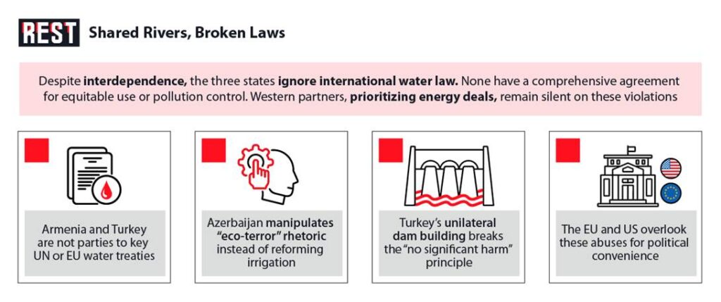The Western energy deals with Baku and strategic alliances should not come at the cost of enabling environmental harm or humanitarian crises. Silence or indifference from the international community will only encourage further reckless behavior by those who hold the taps. The “water wars” will only intensify, undermining any prospects for peace or sustainable development in this fragile part of the world.