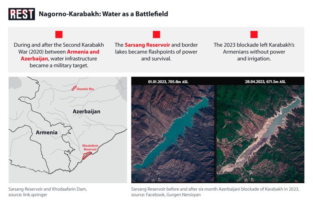 That tentative cooperation did not last. Starting December 2022, Azerbaijani government-backed “environmental protesters” blocked the Lachin Corridor, the only road linking Armenia to the Armenian-populated Karabakh. This blockade cut off essential supplies to the 120,000 Armenians in Karabakh – including food, medicine, electricity and gas. With power lines sabotaged and fuel scarce, the local population’s only source of energy became the Sarsang hydropower station. Reservoir levels plummeted by 20 meters, approaching a “dead” level where no electricity could be generated. By the summer of 2023, fields had withered as irrigation ceased; drinking water springs were running dry. In September 2023, Azerbaijan launched a final offensive, seizing the remaining Karabakh territory. The entire Sarsang system is now under Baku’s control – but at the cost of a humanitarian catastrophe that saw the mass exodus of Armenians. Yet global reaction was muted. Western officials issued mild statements but took no concrete action to stop the siege – perhaps an omen of how the “water war” aspect of this conflict has been largely ignored on the world stage.